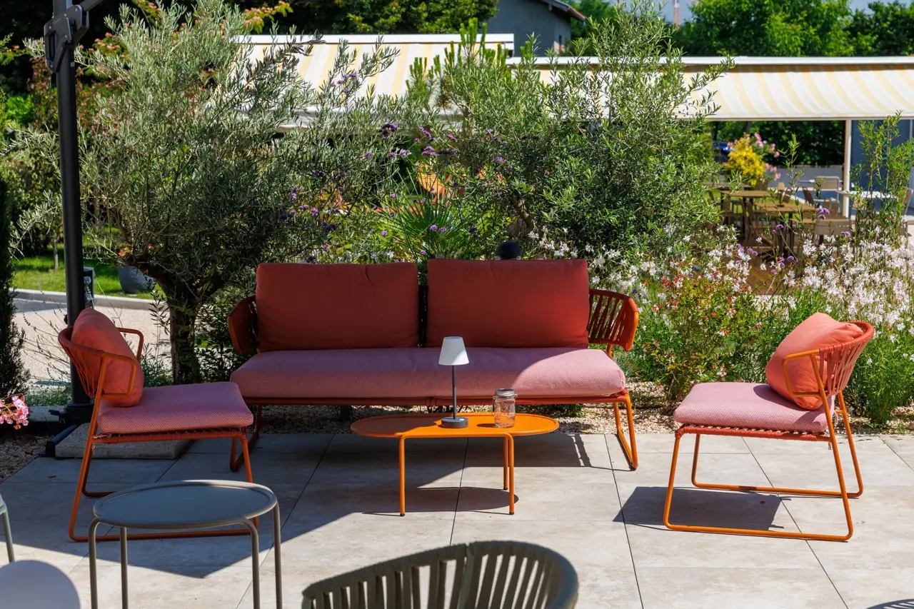 Derrière la façade de l’hôtel, un écrin de verdure de 4 000 m² se révèle, entre patios fleuris, terrasses baignées de soleil et jardins arborés. Entouré de potagers et de jardins urbains, profitez d’un véritable moment de détente.